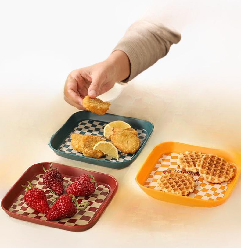食品級プラスチック皿は軽量で割れにくく、食洗機対応。安全な素材で繰り返し使用可能、アウトドアや家庭用に最適です。